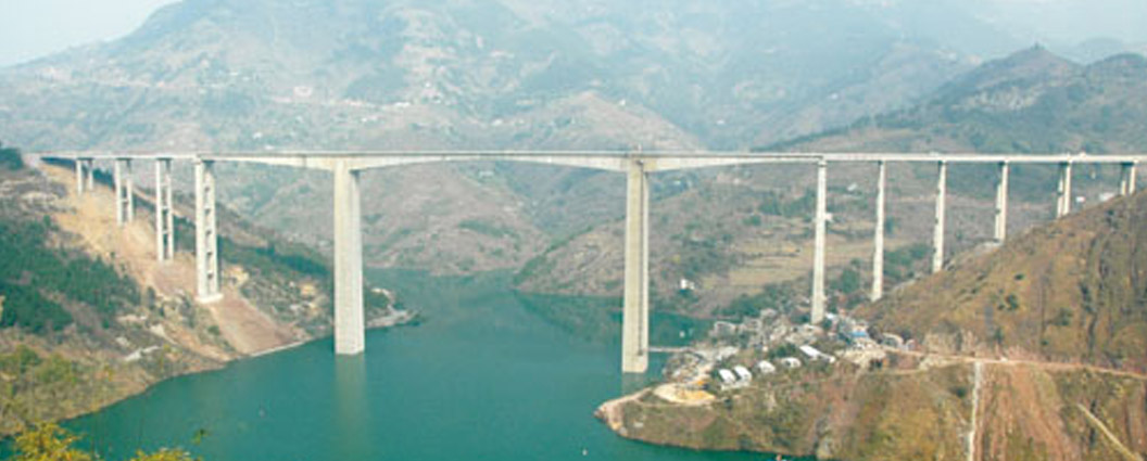 重慶云(陽)萬(州)高速湯溪河特大橋 全長950.44米,主跨230米,主墩高156米,預應力砼連續(xù)鋼構(gòu)橋,2008年12月建成通車。