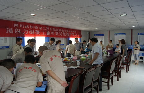 6月13日,成貴鐵路翠屏制梁場預(yù)應(yīng)力混凝土鐵路橋箱型簡支梁局級投產(chǎn)鑒定順利通過,為月底即將進行的國家級生產(chǎn)許可取證打下了堅實的基礎(chǔ)。本次局級投產(chǎn)鑒定專家組由中國鐵道科學(xué)研究院、中鐵一局、中鐵三局、中鐵二十三局、四川路橋等單位6位專家組成,鐵科院研究員馬林任組長,四川路橋集團副總工羅朝基任副組長。橋梁公司副總、四川路橋成貴鐵路六標(biāo)副指揮長胡鶴全程陪同。