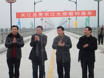 2014年12月22日,通過(guò)四川路橋橋梁公司特種工程分公司的建設(shè)者們艱苦卓絕的努力,勝利完成了夾江縣青衣江大橋加固改造工程。上午11時(shí),青衣江大橋加固改造工程項(xiàng)目部在現(xiàn)場(chǎng)舉行了通車儀式。夾江縣縣委副書(shū)記盧洪,副縣長(zhǎng)羅國(guó)雄,副局長(zhǎng)楊華,特種工程分公司黨支部書(shū)記魏文生出席了慶祝儀式并致辭。