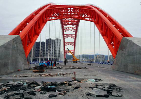 蒼溪縣嘉陵江三橋作為我公司第一個(gè)BT項(xiàng)目工程,為橋梁公司創(chuàng)新發(fā)展帶來新的機(jī)遇及理念。下承式鋼管混凝土系桿拱橋,對(duì)支承系統(tǒng)、主拱肋拱軸線控制系統(tǒng)、鋼管混凝土配制、主拱肋鋼管的拼裝等施工工藝都有特殊的要求,因此技術(shù)復(fù)雜,施工難度大。從2013年1月開工至今天,23個(gè)月的日日夜夜跨越兩個(gè)漫長的酷暑,回想在施工過程中遇到的各種困難,全體員工無不感慨萬千。蒼溪縣嘉陵江三橋取得今天的勝利是項(xiàng)目部全體員工共同努力、迎難而上的結(jié)果,更是“川橋”兒女齊心協(xié)力、堅(jiān)強(qiáng)毅力的見證,相信在我們辛勤的付出之后蒼溪縣嘉陵江三橋最終定會(huì)收獲成功的果實(shí),為蒼溪人民交一份滿意的答卷。
