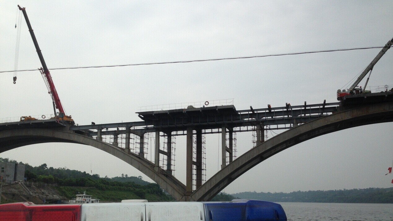 大橋?yàn)?跨不對(duì)稱拱橋且處于危險(xiǎn)狀態(tài),施工時(shí)必須嚴(yán)格控制施工荷載,嚴(yán)格按照對(duì)稱軸(橫向以橋軸線為對(duì)稱軸,縱向以各主拱頂及各主墩為對(duì)稱軸)進(jìn)行對(duì)稱、均勻卸載和加載,防止荷載集中,防止較大振動(dòng)和沖擊;施工作業(yè)面受限,工序繁雜;所有施工作業(yè)均為臨空、臨邊、高空及交叉重疊的高危作業(yè),危險(xiǎn)系數(shù)高,安全風(fēng)險(xiǎn)大;橋下為嘉陵江三級(jí)航道,過往船只較多,在施工的同時(shí)還必須確保航道暢通。施工難度大,工期緊,社會(huì)關(guān)注度高,任務(wù)艱巨。