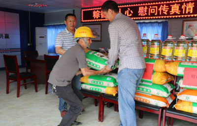 6月1日上午,項(xiàng)目經(jīng)理郭勇、黨支部書記李地霍帶著項(xiàng)目部購(gòu)買的粽子、大米、食用油以及清涼油、藿香正氣水等節(jié)日慰問品和防暑降溫品來到施工現(xiàn)場(chǎng),將項(xiàng)目部的關(guān)愛送到每一位參建員工的心中。