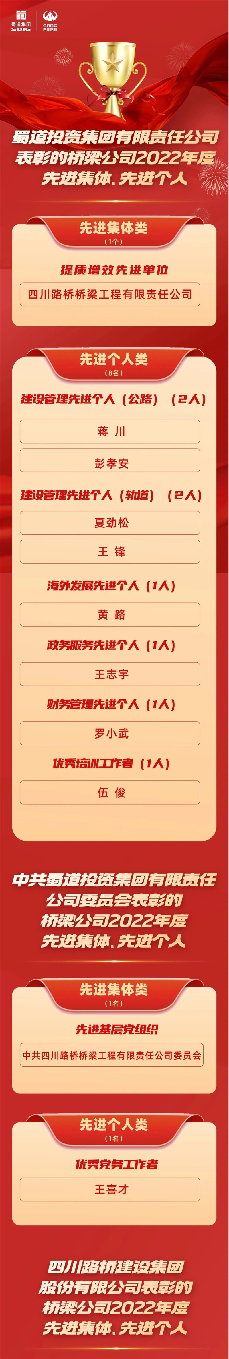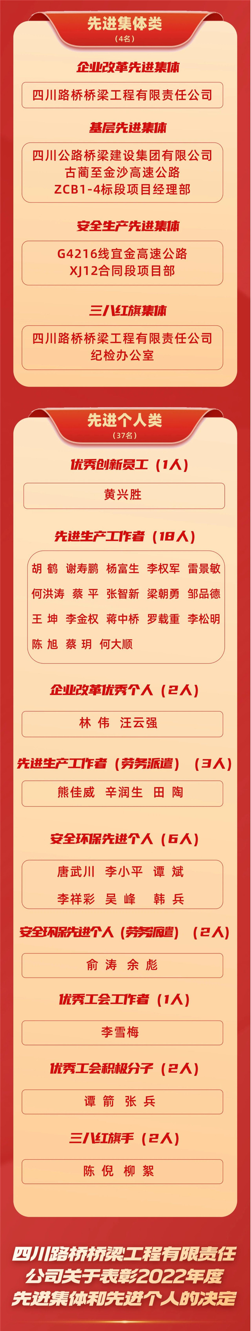 橋梁公司2022年度先進集體和先進個人光榮榜